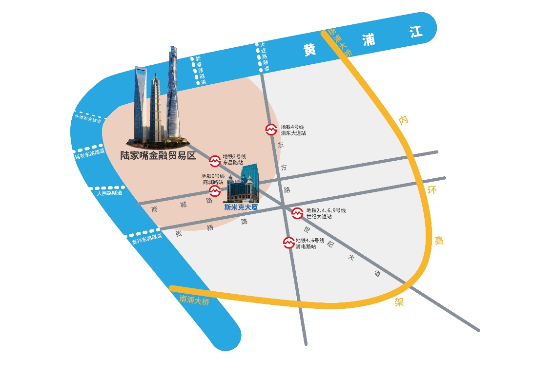斯米克大厦地处陆家嘴金融贸易区、东与世纪大道比邻、西接南泉路、南临张扬路、北衔商城路、地铁2、4、6、9号线在大厦周边交汇,方便换乘;大连路隧道、复兴路隧道、延安路隧道、新建路隧道、复兴路隧道环绕大厦,方便浦东浦西车辆通行;20余条公交路线与大厦周遭相连。 交通便捷使得斯米克大厦凭借得天独厚的地理优势和人性化的物业管理使我大厦成为浦东陆家嘴高级写字楼的一颗明珠。